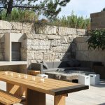 En 2004, mientras caminábamos por uno de los senderos de arena que serpenteaban entre pinos y viñedos hasta el mar, nos encontramos con una antigua ruina de piedra que data de principios del siglo XIX. Encantados por la belleza virgen del entorno y la proximidad a la costa, emprendimos 12 años de negociación, compra, diseño y construcción, para transformar la ruina en una casa diseñada pensando en el verano. Desde el camino, las casas no se ven muy diferentes a las de ese día, con sus fuertes muros construidos con grandes bloques de granito irregulares. Pero ocultas detrás de estas paredes hay dos casas que combinan a la perfección lo histórico con elementos contemporáneos de madera de castaño y acero corten oxidado.